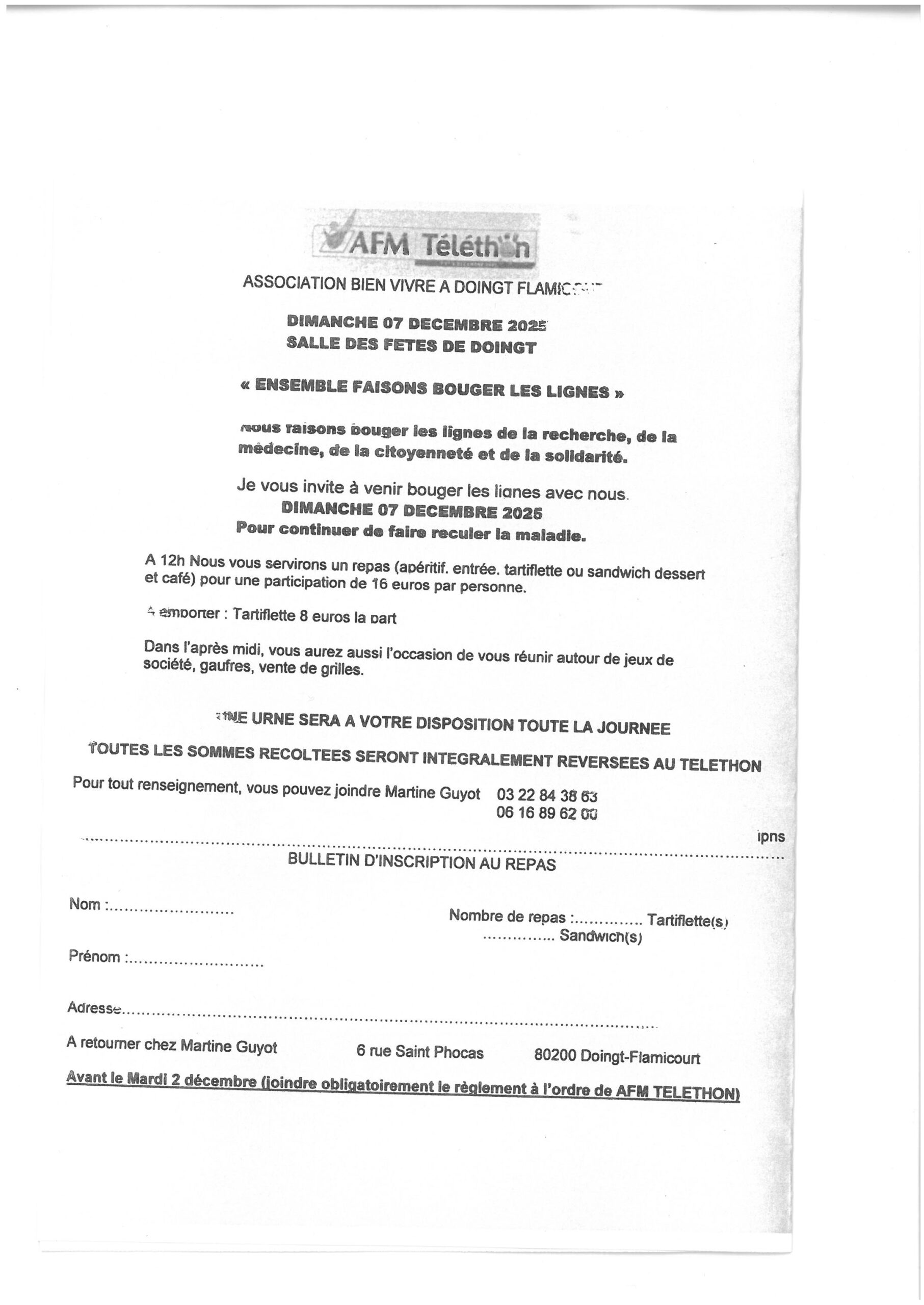 Dimanche 7 décembre 2025, AFM Téléthon à la salle des fêtes de Doingt